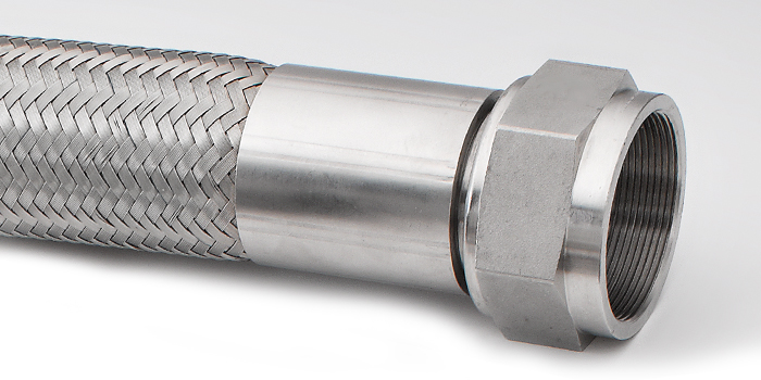 N series helical convoluted-bore, carbon black-filled PTFE hose with ceramic wrap